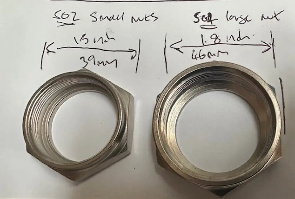 THE LATER 101 STYLE ARE ARE 46MM (1.8IN) OD ACROSS FLATS OF NUT (SEE LAST IMAGE)